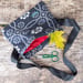 They are made with an adjustable webbing strap for comfortable carrying, made from recycled car seatbelt from the car dismantlers just up the road.