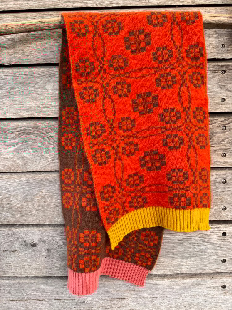 Here we have had specially knitted for us in our welsh blanket design a small run of scarves which are deliciously super soft cosy lambs wool. Comfortable, reversable and perfectly snuggly to keep your neck warm.