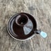 Gorgeous shiny enamel in oak brown with a delicate mint green splodge where you put your thumb on the holder.